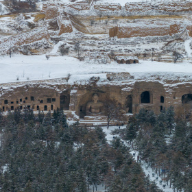 云冈石窟,雪中的露天大佛 2张