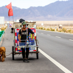 乌兰,G315上拉车徒步直播的网红
